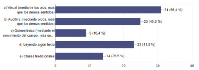 nos muestran que los estudiantes con un (56,4%), les gusta aprender de manera visual,