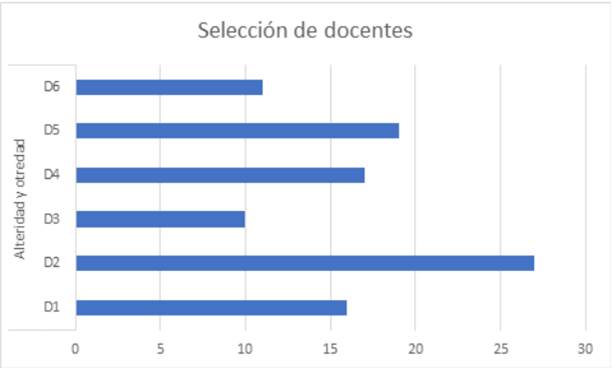 El docente D2 fue seleccionado por los estudiantes como aquel que posee valores de la alteridad y otredad que lo destacan en un porcentaje del 27%.